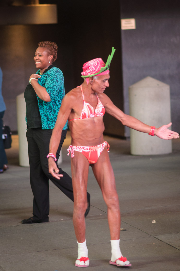 The sun was already setting and it was already pretty dark when I emerged from the depths of the Times Square – 42nd Street Station. I was greeted by the skinny, tanned, bikini clad person I would refer to as Bikini Man for the remainder of my trip. That, my friends, is the epitome of Times Square as the sun fell over the Hudson.